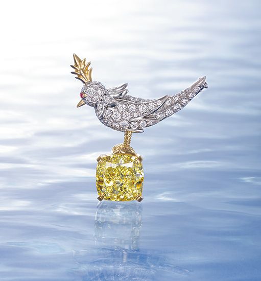 有名なのは「Bird of the Rock」セッティングの128.54カラッとのティファニー・イエロー・ダイヤモンド。