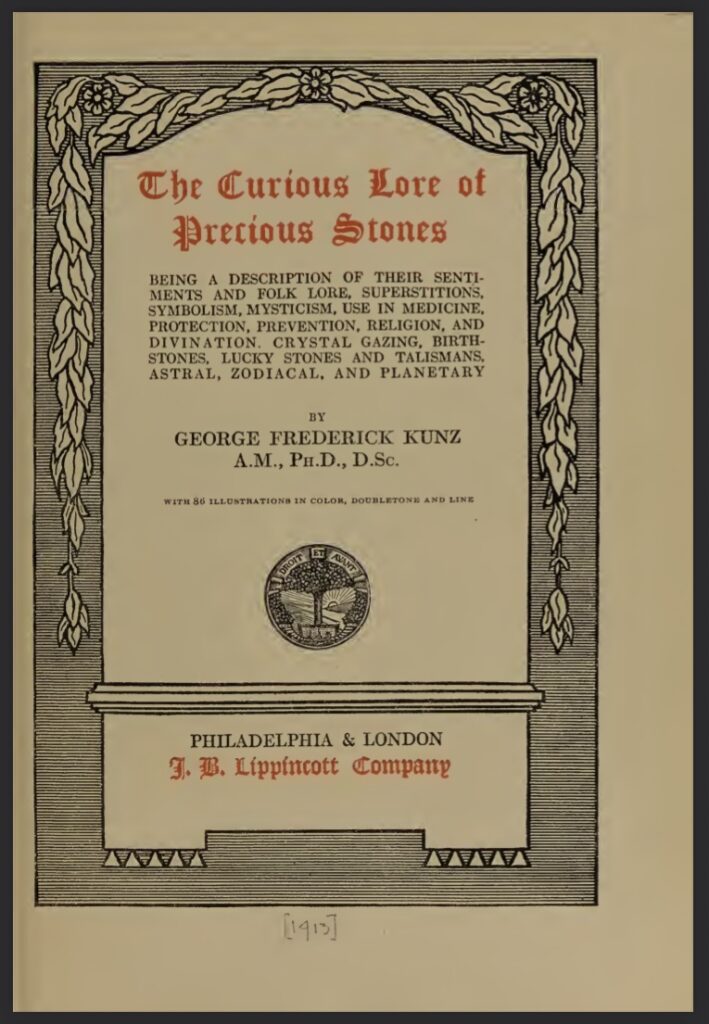 ティファニーの副社長であり、宝石全般を任されていたGeorge Frederick Kunz氏による著書「The Curious Lore of Precious Stones」より。